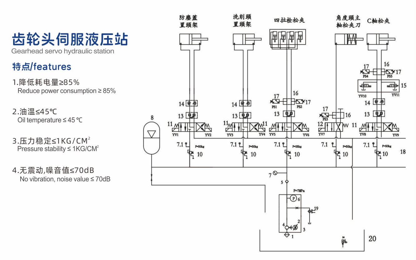 五.油溫穩(wěn)定,減少故障伺服液壓站無需調(diào)壓閥和溢流閥,溫度可控制在45度以下,大部分工況無須裝冷卻系統(tǒng)。